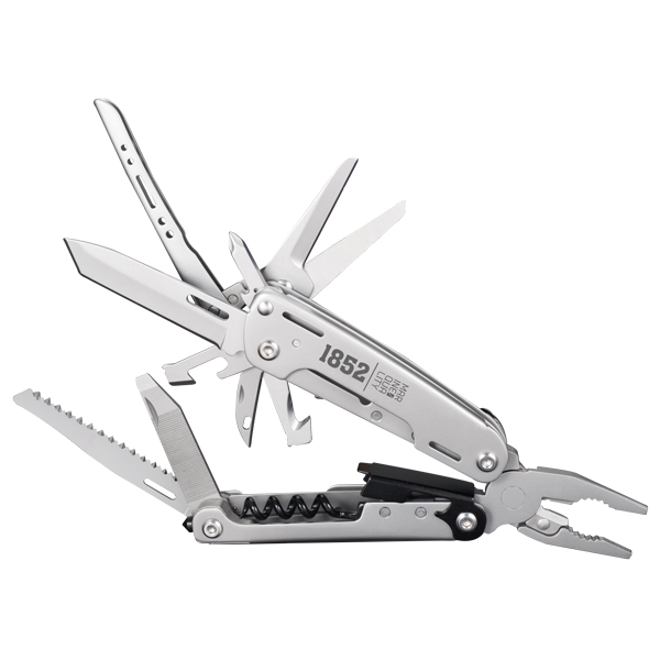 Solid 1852 Multiverktøy Storm med 19 funksjoner i rustfritt stål. Perfekt for både profesjonelle og friluftsentusiaster. Leveres med slitesterk belteveske.