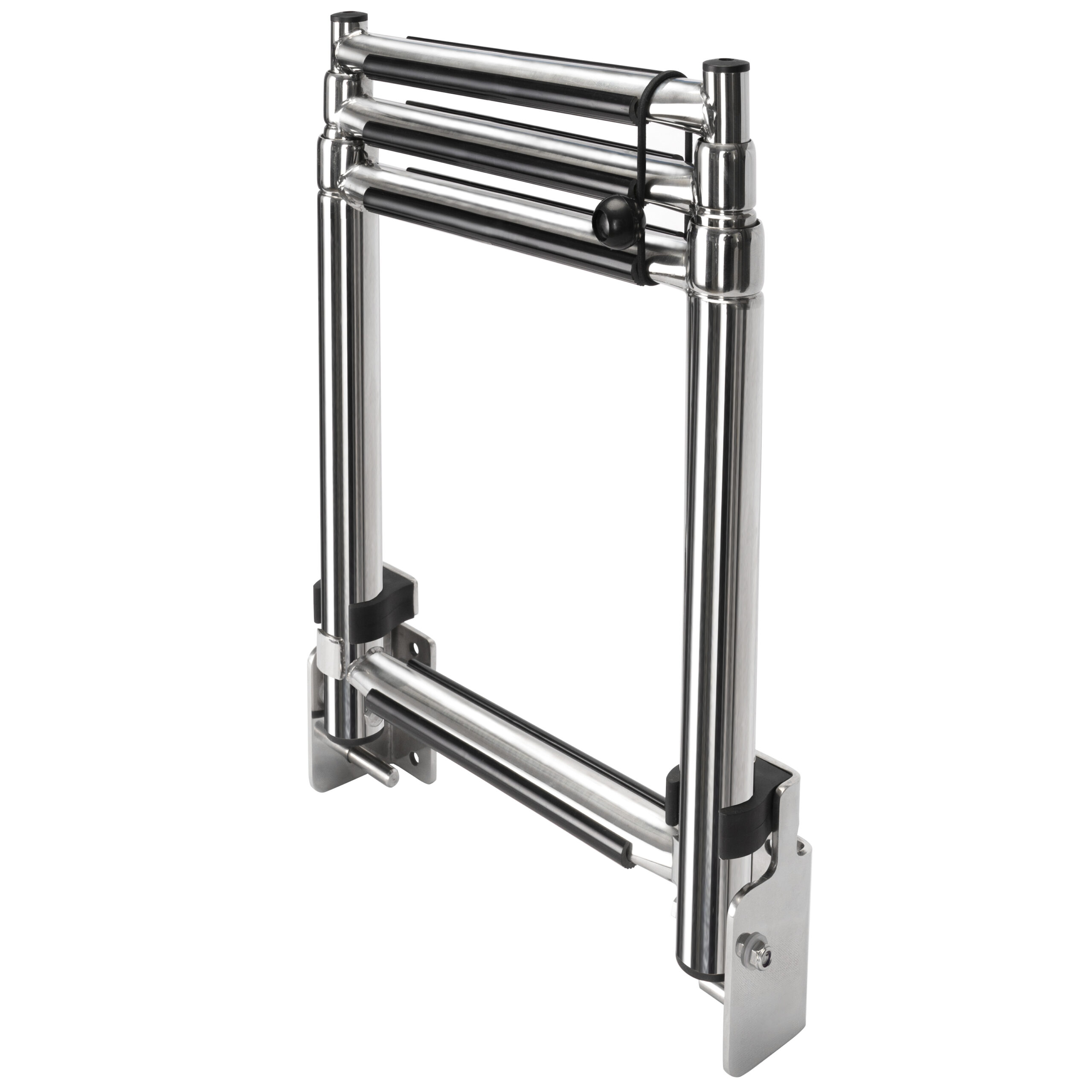 1852 Teleskopbadestige til akterspeil gir enkel og sikker ombordstigning. Laget av robust 316 rustfritt stål og med en komfortabel 30-graders vinkel. Velg mellom 3 eller 4 trinn.