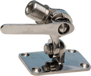 Syrefast antennefot for toppmontering med justerbar vinkel og hurtigkobling. Robust konstruksjon (92x63mm bunnplate) for optimal signalmottak og enkel montering. Perfekt for krevende maritime forhold.