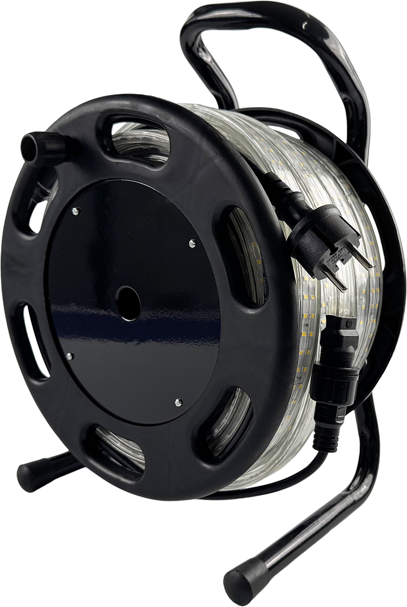 Denne LED-stripen leveres praktisk på trommel for enkel transport, lagring og rask utrulling. Den gir et sterkt og behagelig lys (4000K), og egner seg både til innendørs og utendørs bruk takket være robust konstruksjon og høy kapslingsgrad (IP67).