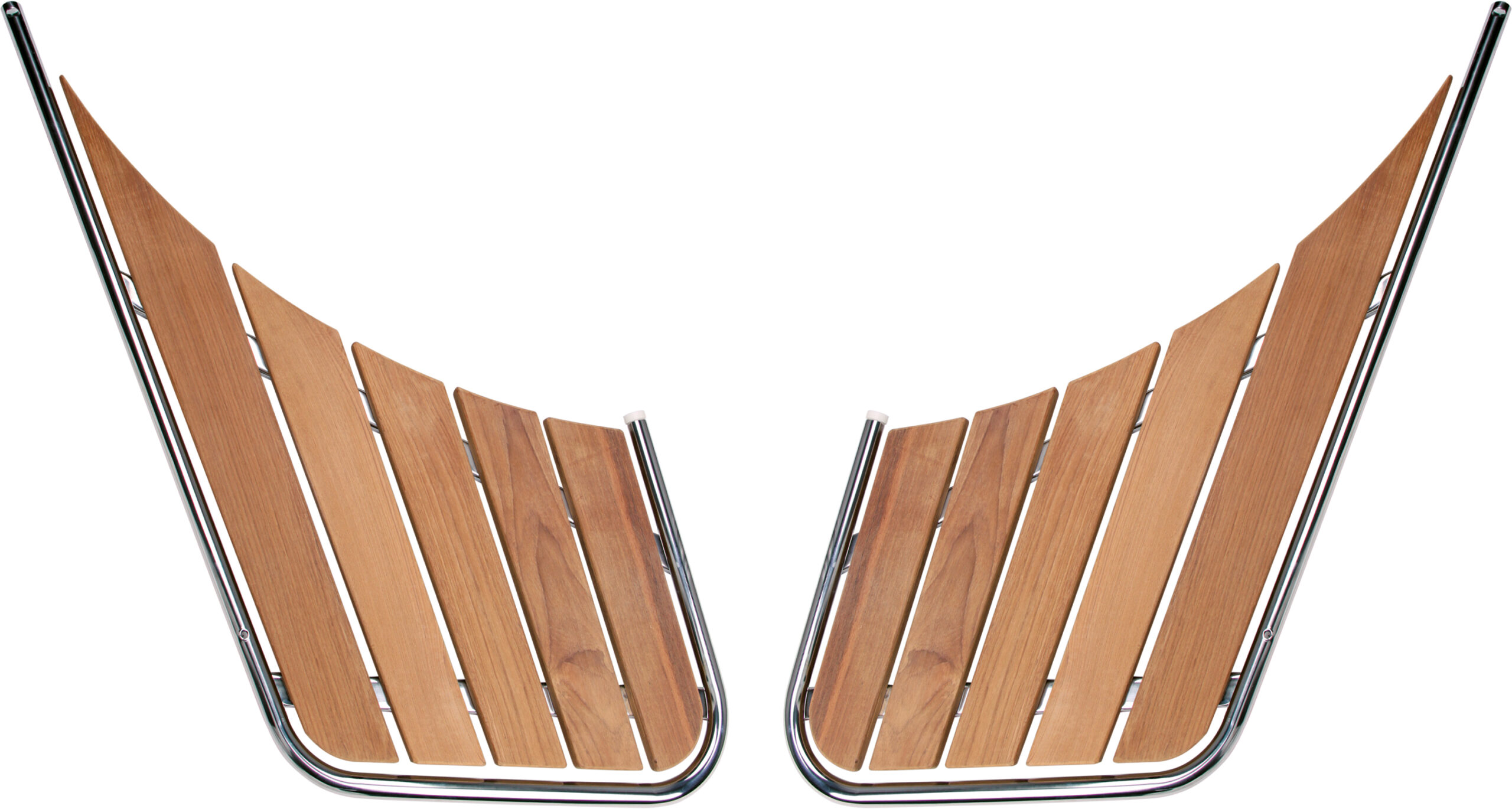 Teakdetaljene gir plattformen et klassisk og eksklusivt utseende som passer perfekt til enhver båt. Teak er også behagelig å gå på, selv i varmt vær.