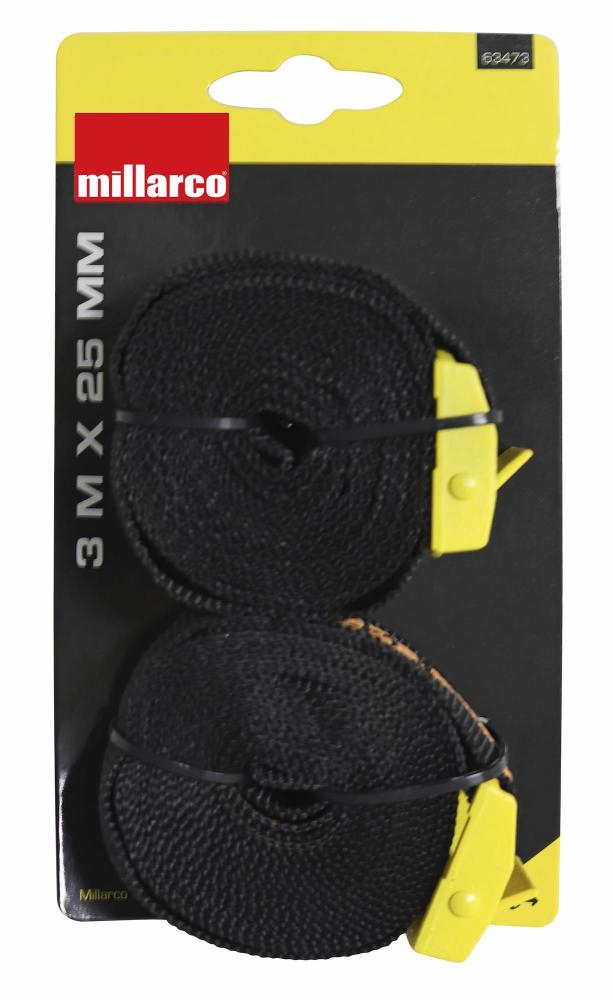 Sett med 2 stk bagasjestropper, for sikring av lettere last.Lengde: 3,0 mBredde: 25 mmBruddstyrke: 100 kg