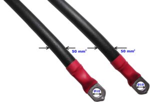 Batterikabel 50mm2 – 500mm – 10mm kabelsko – Myk kvalitet