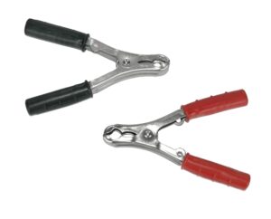 Sikre og isolerte batteriklemmer 90A i sett (sort/rød). For kabler 10-25mm². Maks åpning 26mm. Robust konstruksjon for pålitelig tilkobling i krevende miljøer.