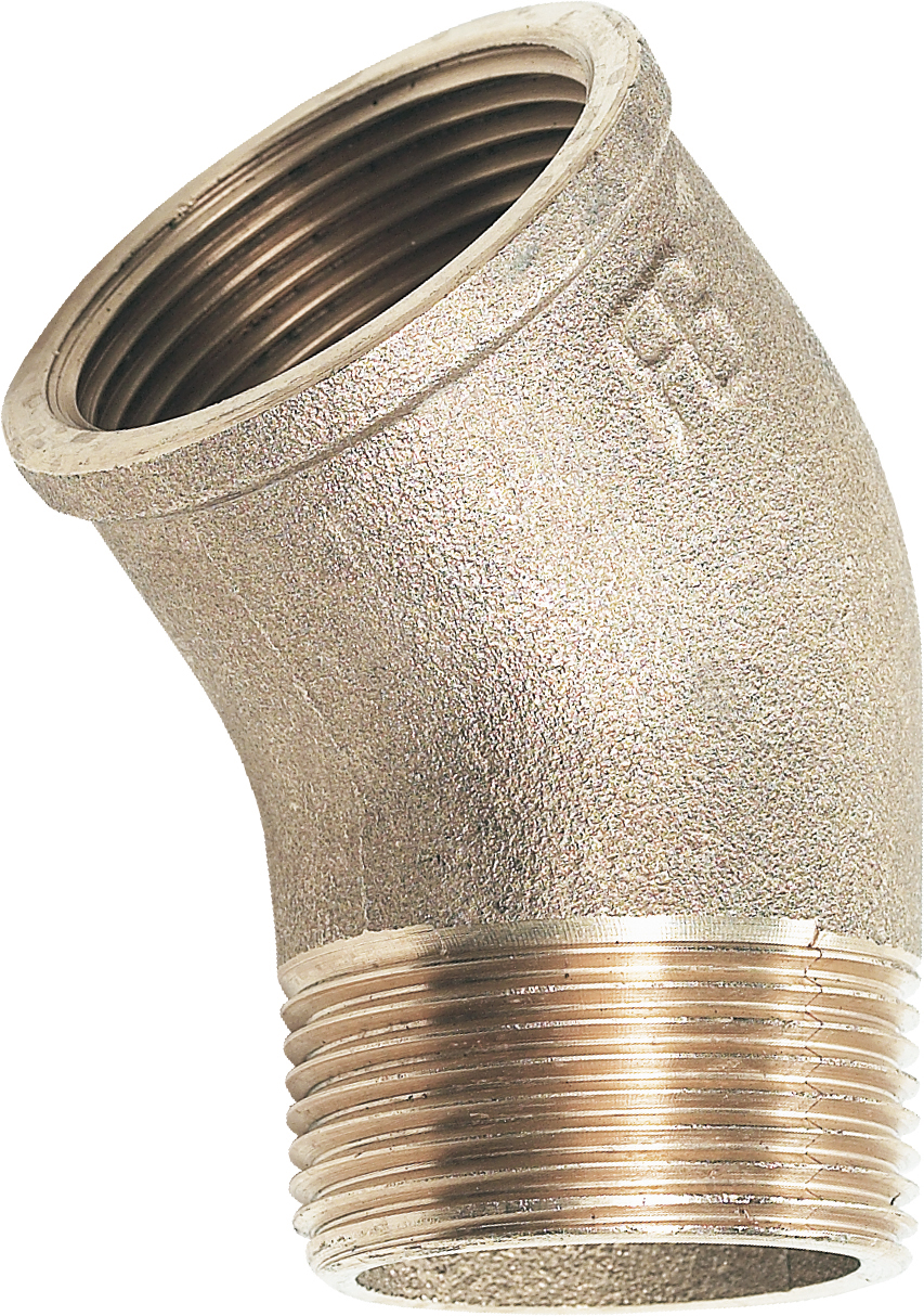 Solid 45 graders messingbend med innvendige/utvendige gjenger (han/hun). Ideell for VVS og lenseutstyr i båten. Korrosjonsbestandig og produsert etter ISO-standarder for sikker og pålitelig bruk.