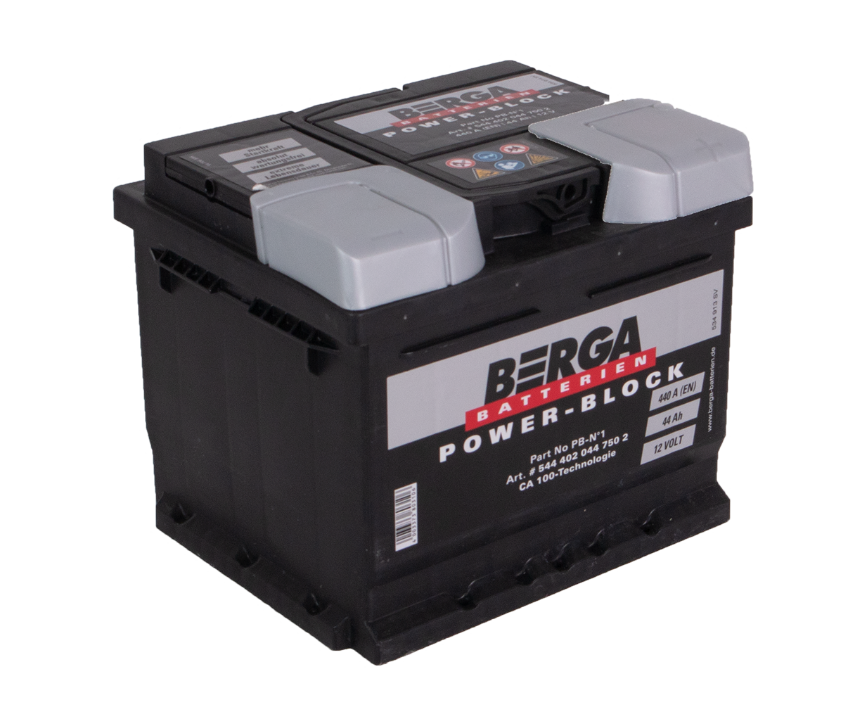 BERGA Power Block 12V 44Ah: Kompakt og kraftig startbatteri med 440CCA. Vedlikeholdsfritt og ideelt for biler med standard strømforbruk. Tysk kvalitet for driftssikkerhet og lang levetid.