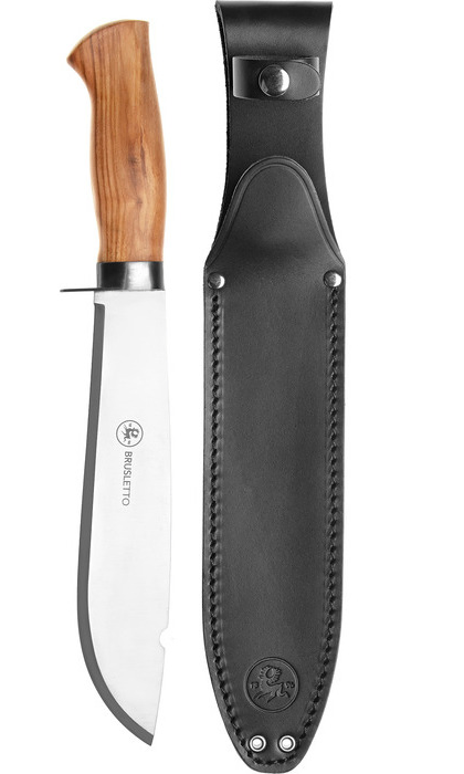 Villmarka Stor er Brusletto sin største kniv noensinne. Den er designet for de tøffeste oppgavene for friluftsfolket, jegere og fiskere. Kniven er satt opp med Skandinavisk slip og holk i rustfritt stål, og den er sterk nok til å hugge med. Knivbladet har Brusletto sin tradisjonelle signatur – halvmånehakket i ryggen- for å løfte kaffekjelen av bålet. Kniven har skaft i oliventre og kraftig fingervern. Dette er en kniv som er grundig testet i norske fjell og skoger, og på vinterstid i polare strøk. Tekniske data: Knivlengde total: 36cmBladlengde: 22,5cmBlad: Rustfritt stål, 440CBladtykkelse: 2,5mmSkaft: Oljet oliventreSlire: Sort okselærVekt: 262gr