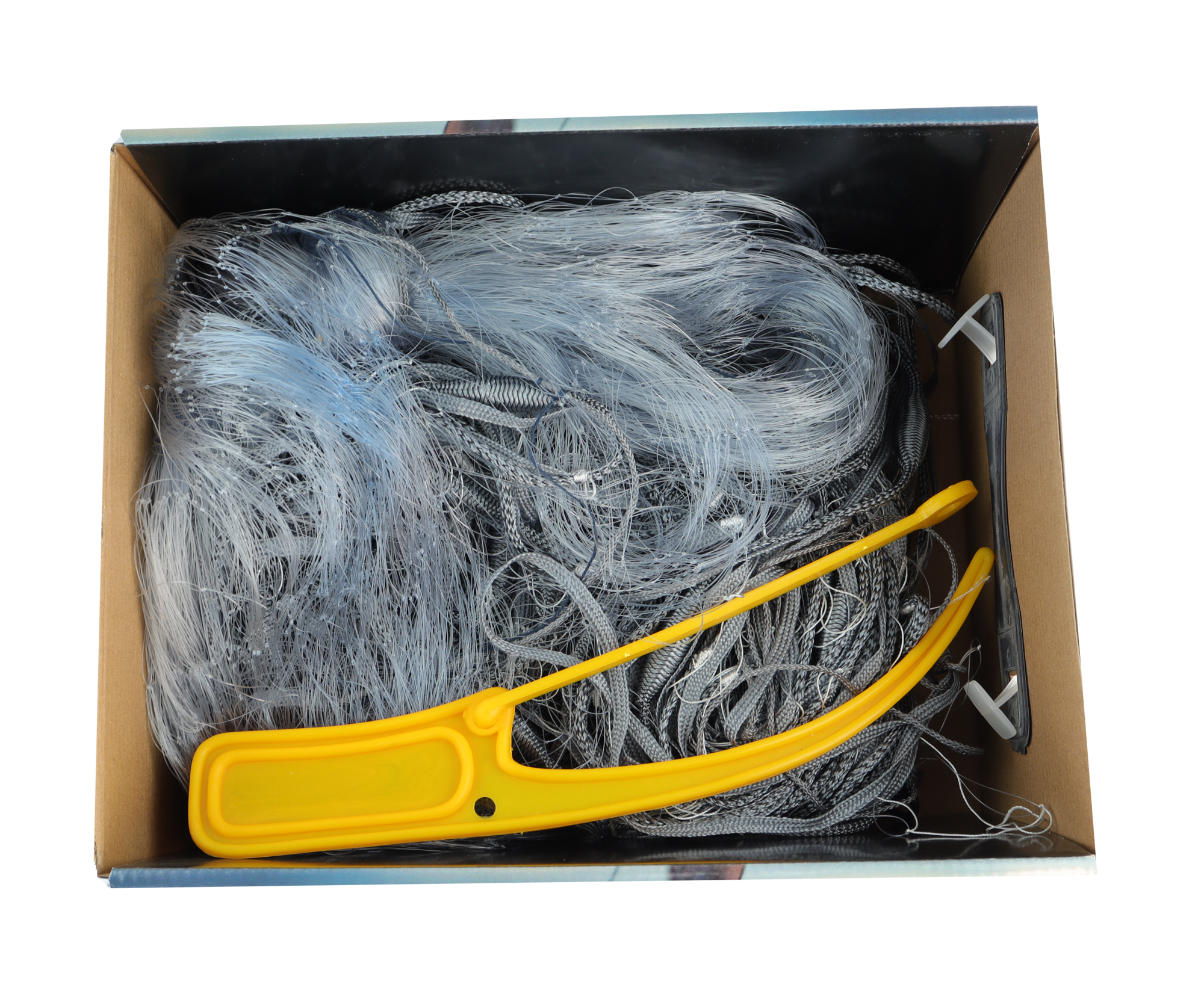 Fjordgarn i monofil 0,30 (sene) Maskevidde: 63mm/10 omfLengde: 25mDybde: 1,8mMontert med flyteline 3/35 og blyfri synkeline 2,2 kg.pr.100m i bunn.Brøstning 2mm flat PP line