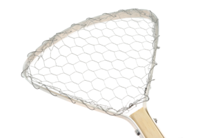 Solid krabbehov for fangst av krabber langs svabergene. Treskaft, med kraftig metallnetting rundt ramme av aluminium. Lokalt produsert her i Mandal!