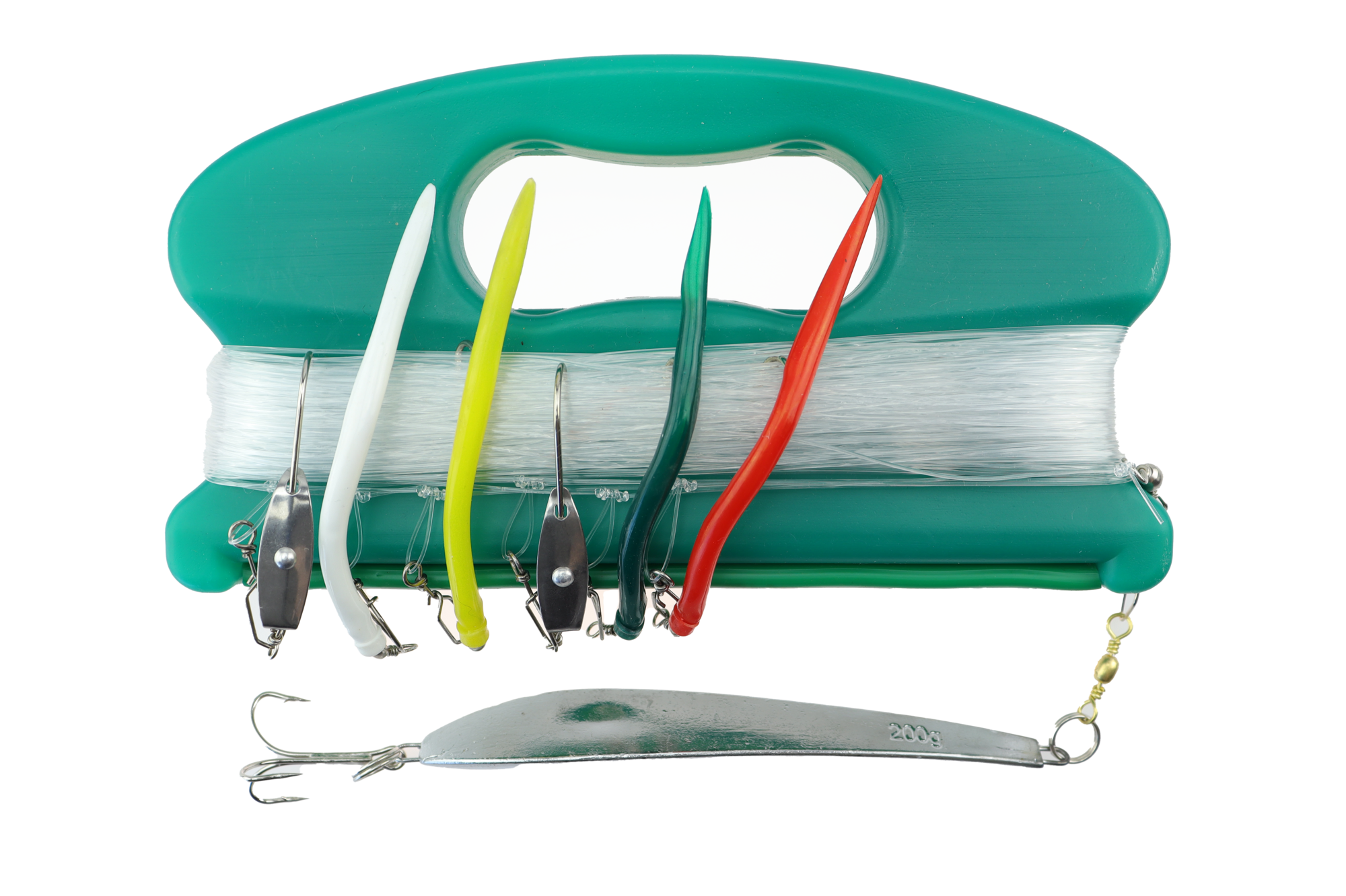 100m 0,90mm sene, 4 stk gummimakk 2 rykk og 200g pilk