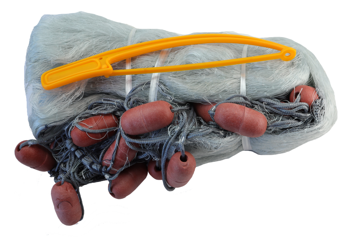 SILDEGARN Blyfri synkeline 7kg/100m 4mm PP rund line ved topp, bunn og sider. Påsatt 15 stk. 3″ eggformede flottører Dybde ca. 8 meter. Lengde 19 meter.