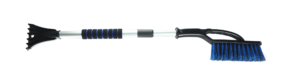 Meget kraftig snøbørste med isskrape. Teleskopisk skaft i aluminium, og behagelig isolert grep. Lengden kan justeres fra 87-114cm. Denne blir din beste venn i vinter! Assorterte farger Krt à 22/1 stk Vekt: 460gr