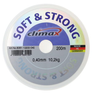 Climax Soft & Strong er en sterk allround monofilament sene, egnet for både ferskvann og sjøfiske. Finnes i dim. 0,20-0,55mm, spole à 200m Finnes også i dim. 0,50-1,40mm. 5x100m spole i eske.