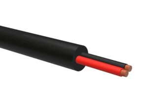 Dobbelisolert 2x6mm² kabel for sikker og fleksibel bruk i båt og kjøretøy. Rød/sort. Selges per meter. Tåler -30°C til +70°C.