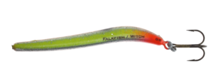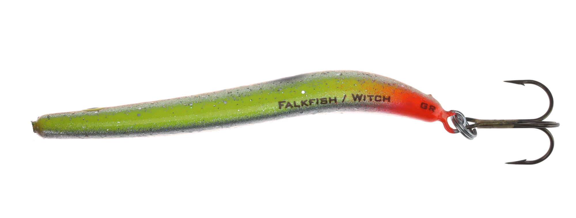 Falkfish Sports AB holder til i Falkenberg på Sveriges vestkyst, og har produsert sportsfiskeutstyr av høy kvalitet i 25 år. Størsteparten av produksjonen foregår i Sverige, og resten i EU, alt underlagt streng kvalitetskontroll. Alle kroker produseres av WMC, alle sluker med unntak av Spøket er uten bly, og innpakning er både miljøvennlig, innbydende og praktisk.  Witch har med sin lange og lett buede kropp en gange som simulerer tobis og sild. Formen gir også svært gode kasteegenskaper, og den håndmalte kroppen i slagfast ABS kombinert med sylskarp krok fra WMC gjør Witch til en favoritt i jakten etter sjøørret. Witch er håndlaget i Sverige, og har en svært høy og naturtro finish. Vi lagerfører denne i 7 spennende farger og 3 vektklasser.