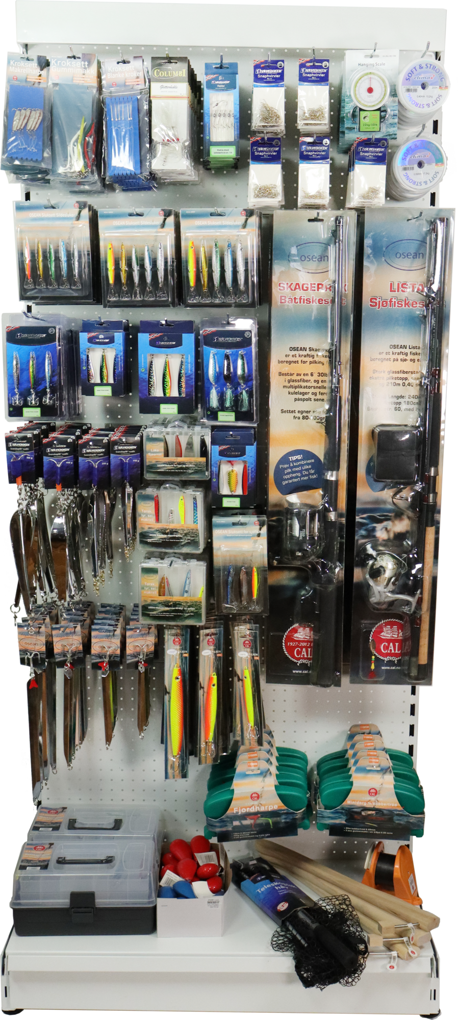 Her er en pakkeløsning fiks ferdig med alt fra piggvegg og varene, passer i dette oppsettet optimalt på vestlandet. Men kan lett modifiseres til å passe andre deler av landet. Bruk denne som inspirasjon for din butikk, og kontakt oss for en løsning.