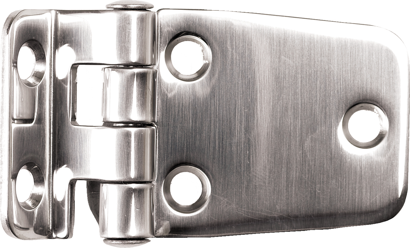 Solid og syrefast vinkelhengsle (63 x 38,5 mm) for maritimt bruk. Perfekt for luker, skap og dører. Høyglanspolert rustfritt stål sikrer lang levetid og korrosjonsbestandighet. For 10 mm tykke plater.