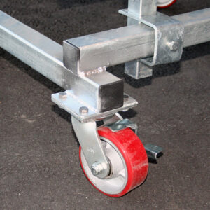 Hjulene er svingbare, noe som gir deg god kontroll og fleksibilitet når du flytter lasten. Hvert hjul er utstyrt med en brems, slik at du kan sikre trallen på plass og unngå utilsiktede bevegelser. Dette er spesielt viktig ved opplag av båter eller annet kostbart utstyr.