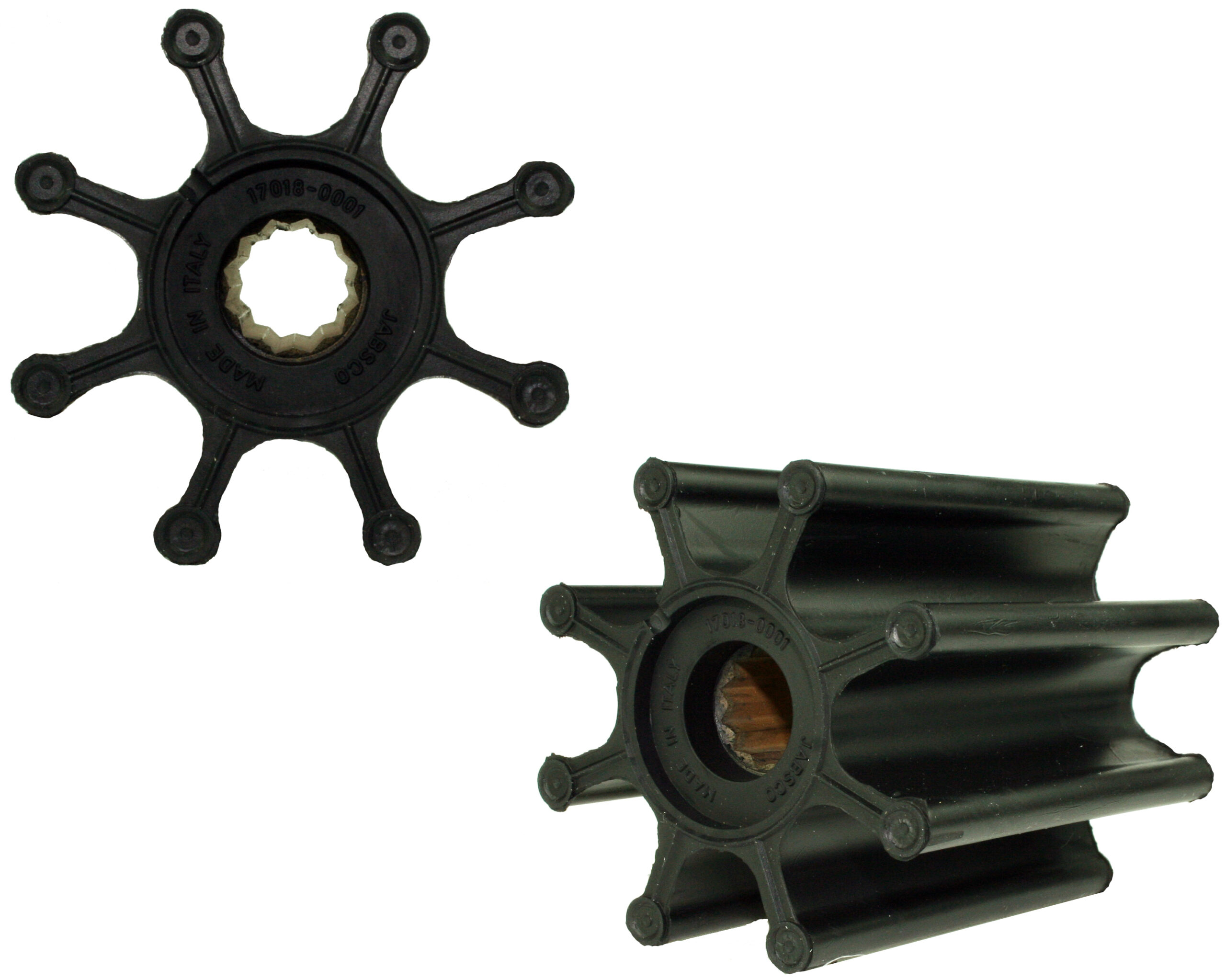 Høykvalitets Impeller NE 17018-0001B. Erstatter JMP, Jabsco og Volvo Penta. Sikrer optimal kjøling og ytelse. Utvendig diameter: 65 mm, 8 blader.