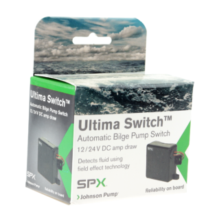 Ultima Switch er en elektronisk nivåbryter for automatisk styring av lensepumper. Denne digitale bryteren produserer et mikroelektrisk felt, og når dette feltet blir avbrutt av vann eller annen væske, sluttes en krets som videre aktiverer lensepumpen. De innebygde detektorene er helt vanntette og kommer aldri i kontakt med vannet, de ruster ikke og påvirkes ikke av olje eller smuss. Ultima-nivåbryteren aktiveres ved et vannivå på 50mm, og stenges ved 20mm. En 3-sekunders forsinkelse hindrer at pumpen starter unødig. Egnet for pumper med strømforbruk opp til 20 ampere, både for 12- og 24v. Ultima Switch har et genialt festesystem som passer direkte på de ulike Johnson-pumpene. Dette medfører at du ikke trenger å skru bryteren fast i båten. Den kan også festes med skruer. Test-funksjon som lar deg teste at pumpen fungerer med å plassere to fingre direkte på sensorene. Dim: 65x60x30mm
