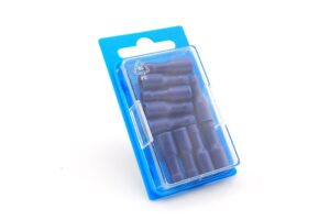 Sikre og pålitelige kabelsko (10 stk) med vinylisolasjon. Blå, for kabler 1,5-2,5 mm². Maks 300V, 75 grader. Perfekt for båt og bil.