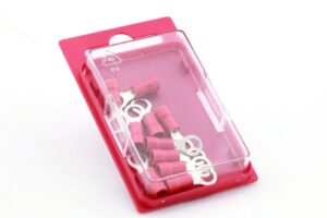 Sikre og pålitelige kabelsko for maritimt bruk. 10 stk vinylisolerte ringkabelsko (rød, 0,5-1,5 mm²) for sikker tilkobling. Tåler 300V og 75 grader.