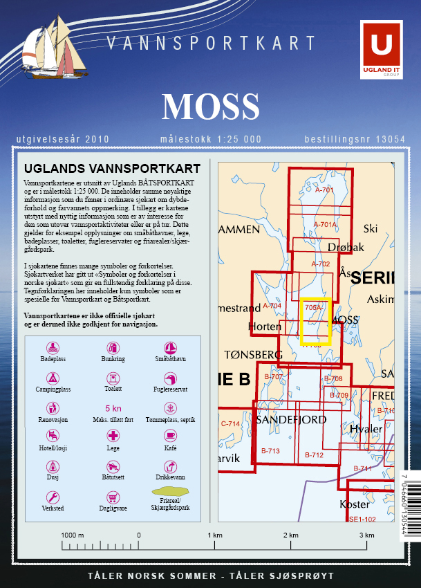 Vannsportkart Moss gir deg den samme nøyaktige informasjonen som vanlige sjøkart, inkludert dybdeforhold og markering av farvann. I tillegg finner du verdifull informasjon spesielt nyttig for vannsportentusiaster og turfolk: