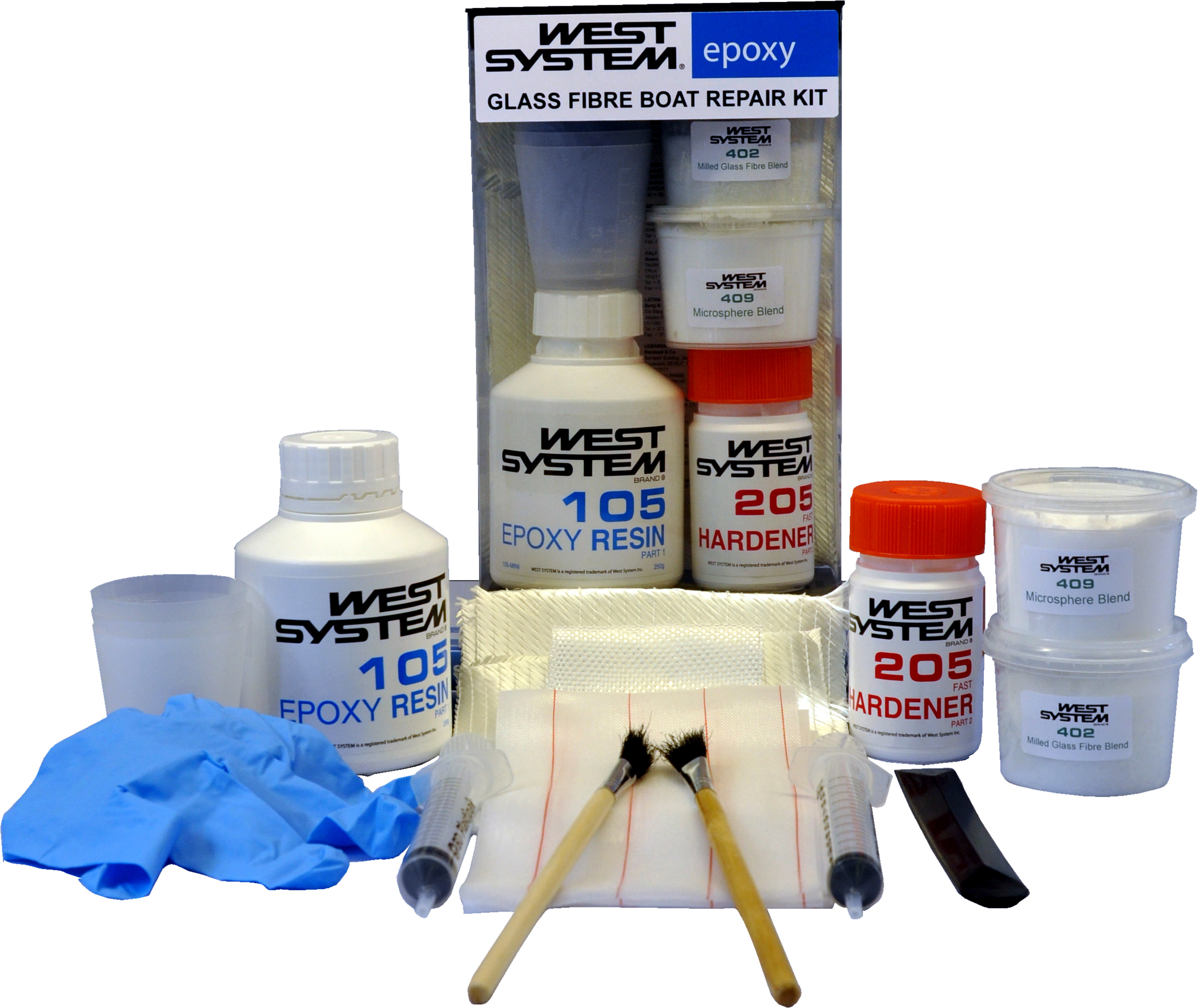 Komplett reparasjonssett for glassfiberbåter. Inneholder alt du trenger for å reparere skader selv. Spar penger og tid! Leveres med brukerveiledning og instruksjons-CD.