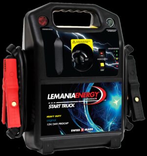 LEMANIA PROCAP Startbooster Proff 12/24V: Batteriløs, sveitsisk kvalitet. Rask opplading (10 sek – 2 min), høy starteffekt (4400A/3400A). Lav vekt, lite vedlikehold. Perfekt for proff bruk!