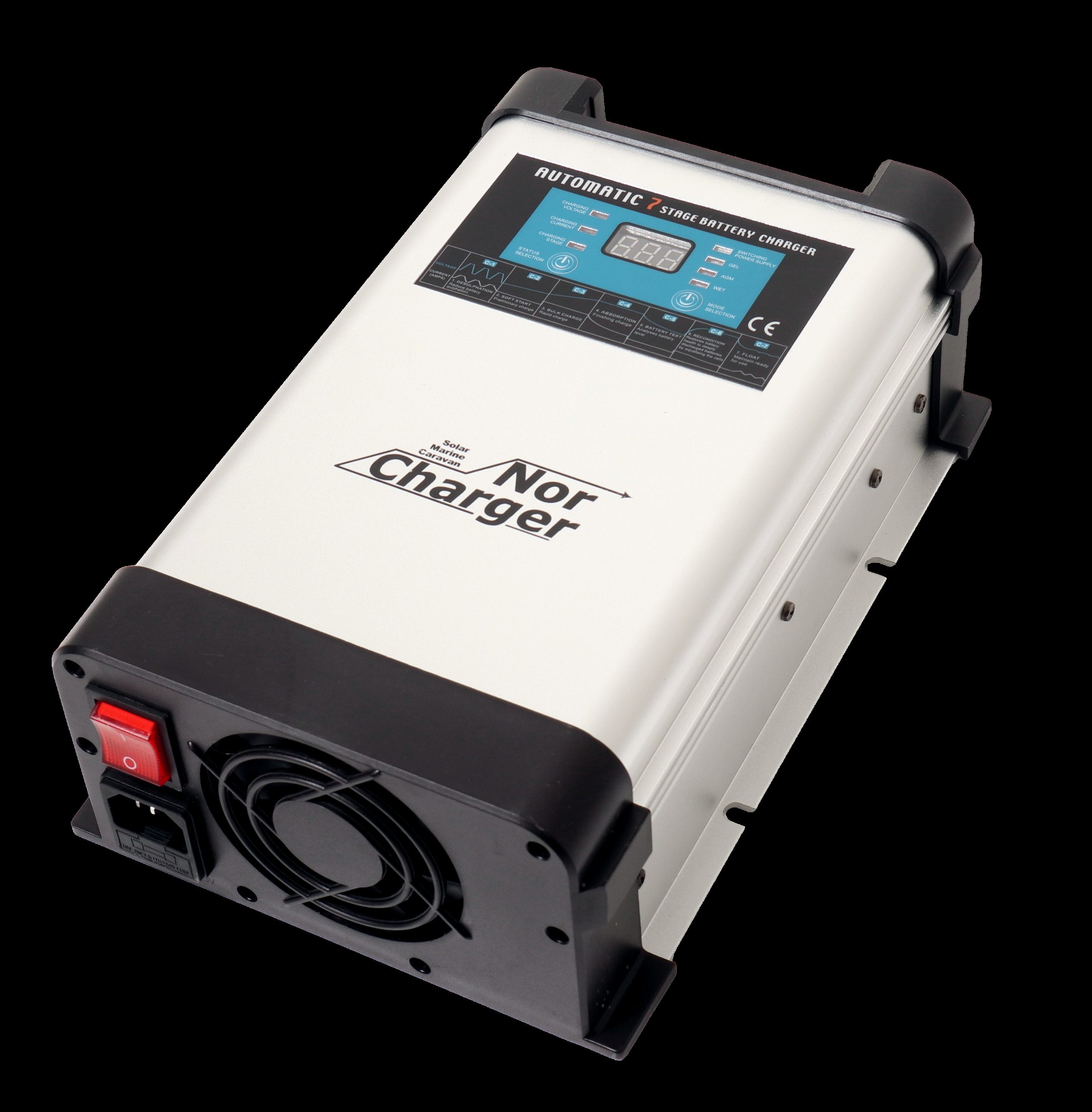 NOR CHARGER Pro fungerer også som en strømforsyning uten tilkoblet batteri, med flere spenningsvalg for økt fleksibilitet. Det digitale displayet gir deg full kontroll over ladestatus og fremdrift i ladeprosessen.