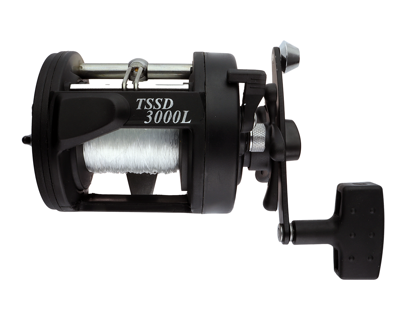 God og prisgustig multiplikatorsnelle for båt -og pilkefiske. Leveres komplett med påspolt sene.0,50 Kapasitet: 260m/0,40 – 200m/0,45 – 140m/0,50 Utveksling: 3,8:1 Med snørefører. Leveres i blisterpk. 6 stk pr kartong.
