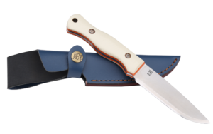 Svalbard slirekniv er både elegant og arbeidsvillig, en kniv til hverdags og fest. Den er vakker når du har den hengende på bunaden og skarp når du spikker flis til bålet. Dette er en solid allsidig kniv i premium stål. Det gjennomgående knivstålet (fulltange) gir kniven god balanse. Det hvite Micarta skaftet har en G10 orange linje og små mosaikk nagler. Kniven ligger i en blå skinnslire med med orange søm og beltefeste.Vekt m/slire: 230grBladlengde 11cmTotallengde: 22cmLeveres i gaveeske.