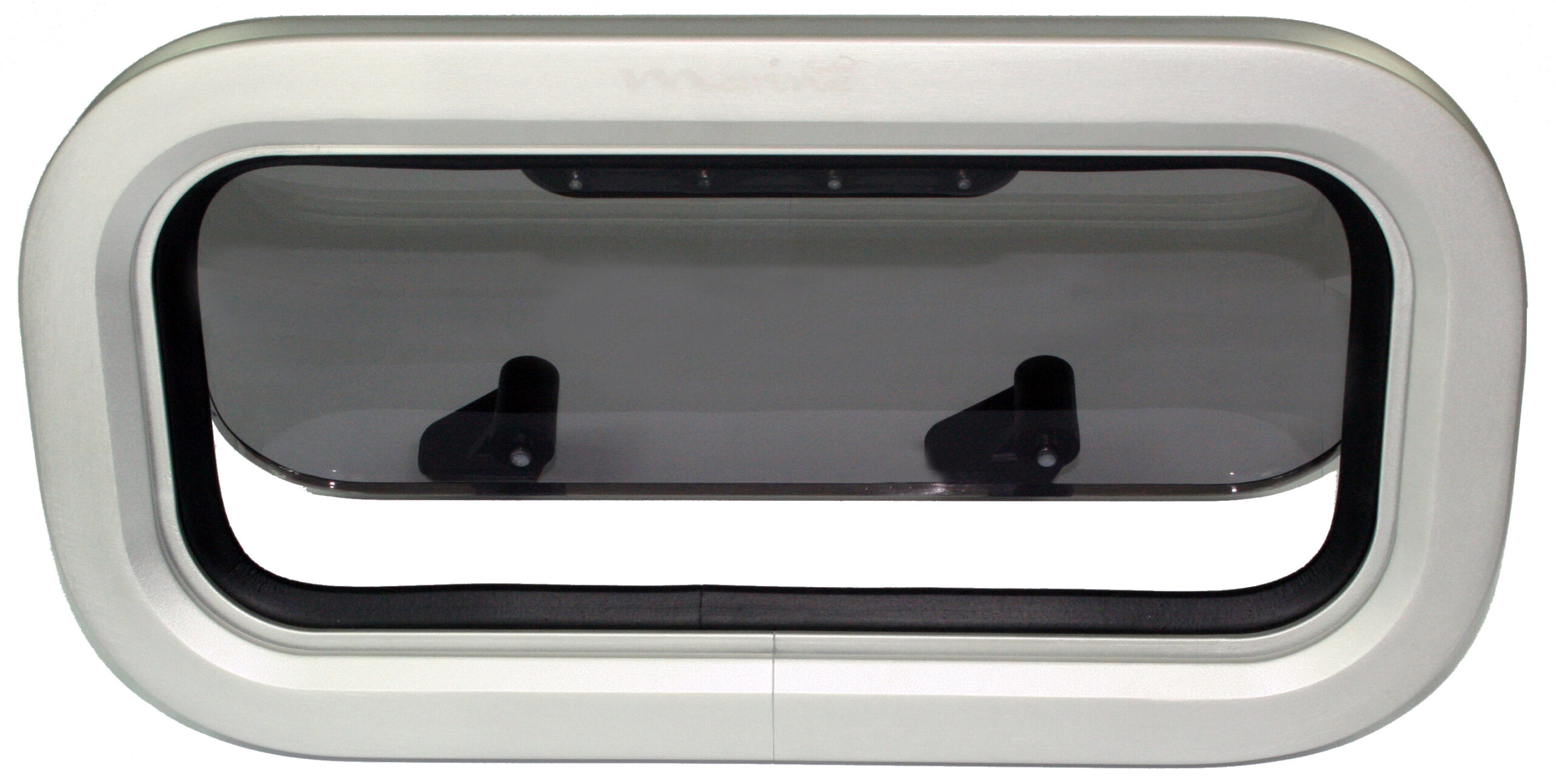 Klassisk oval portlight i aluminium med sotet pleksiglass. Enkel åpning/lukking med to håndtak. Utvendige mål: 197 x 394 mm. Perfekt for å slippe inn lys og frisk luft i båten!