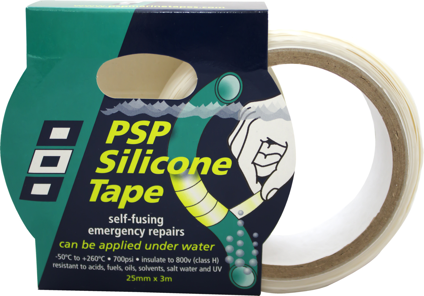 PSP Self Fusing Silikontape: Rask og pålitelig løsning for lekkasjer og nødreparasjoner ombord. Tåler temperaturer fra -50°C til +260°C og forsegler lekkasjer opp til 6 bar.
