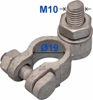 RACO Polsko for sikker og korrosjonsbestandig positiv (+) batteritilkobling. Laget av fortinnet messing, passer kabler fra 25-70 mm². Med M10 bolt.