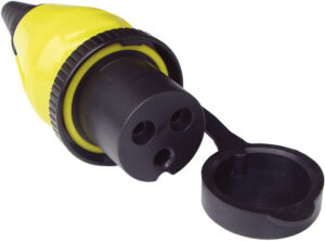 Robust Ratio landstrøm støpsel 16A med lokk for sikker og vanntett (IP44) tilkobling til landstrøm. Anbefalt kabel: 3 x 1,5 mm eller 3 x 2,5 mm.