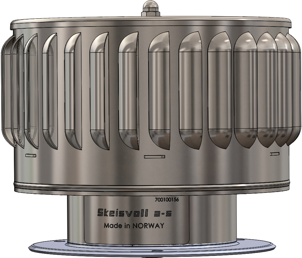 Vinddrevet rotorventil Ø175mm for permanent og stillegående utlufting av båt, toalett og lignende. Laget av syrefast stål for lang levetid.