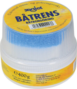 Med en nettovekt på 400 g, har du nok rensemiddel til mange bruksområder. Gjør rengjøringen enkel og effektiv med Seajet Båtrens m/svamp!