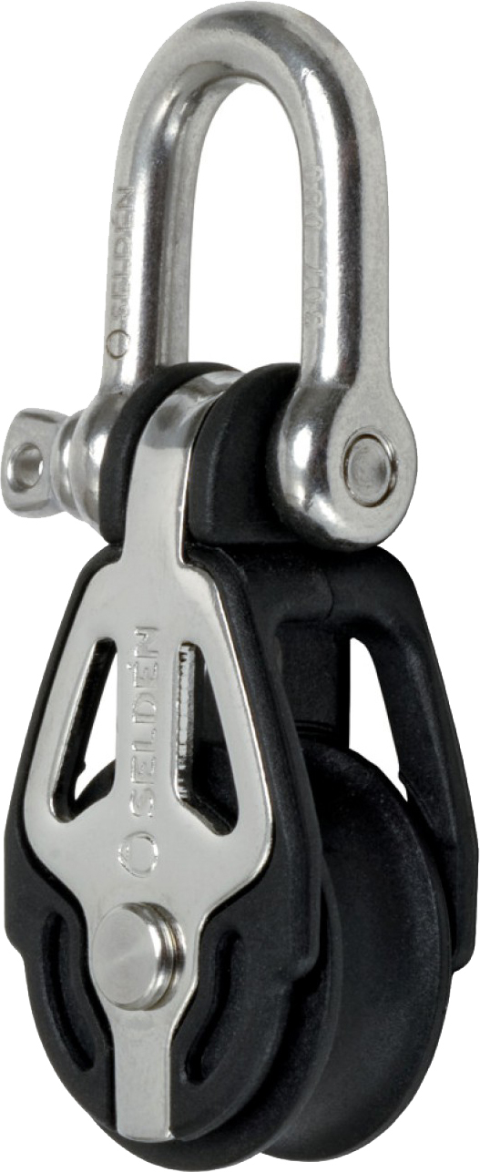 Seldén BBB20 enkelblokk med sjakkel: Lett, sterk og pålitelig blokk med kulelager for jevn gange. Perfekt for kontrolliner, fall og trimliner på seilbåten. Maks taudiameter: 6mm.