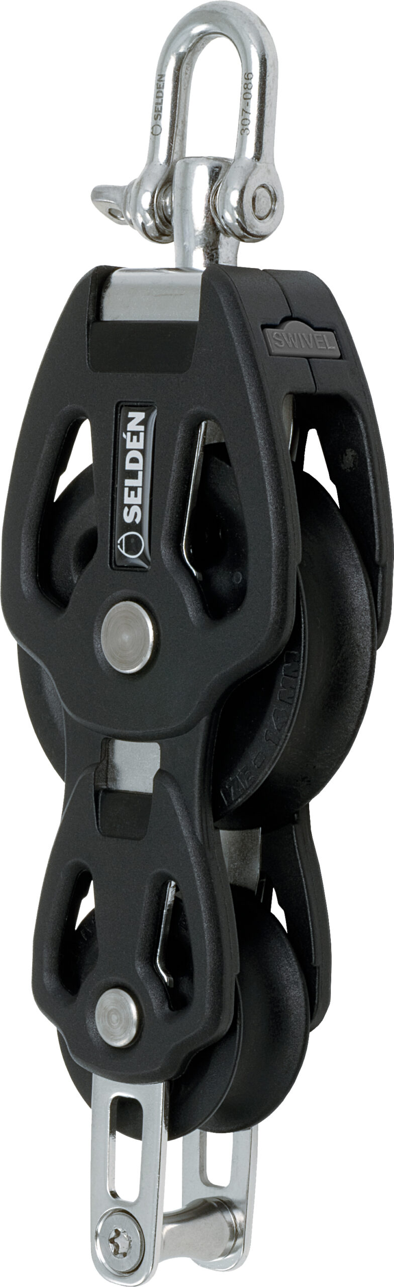 Seldén PBB60 fiolblokk med svivel er perfekt for høy statisk belastning. Solid konstruksjon, låsbar svivel og glassfiberforsterkede sider. MWL: 1000 kg. Maks taudiameter: 14 mm.