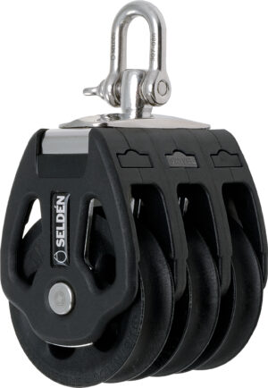 Seldén PBB80 trippelblokk er ideell for høy belastning. Solid konstruksjon med Acetal-skiver og glassfiberforsterkede sider. Svivelen kan låses uten verktøy. Maks taudiameter: 16 mm. MWL: 2000 kg.