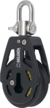 Seldén RBB80 enkelblokk for seilbåt – optimalisert for dynamiske laster og smidig manøvrering. Maskinbearbeidet aluminium, Torlon® rullelager og låsbar svivel. MWL: 2500 kg. Maks taudiameter: 14 mm.