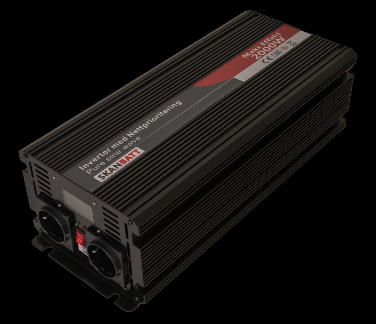 SKANBATT Inverter 12V 2000W Ren Sinus med Nettprioritering