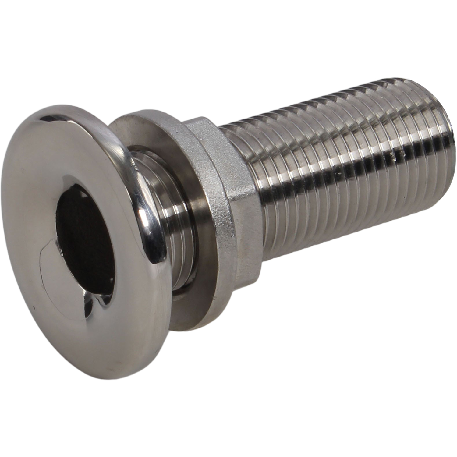 Syrefast skroggjennomføring med slangekobling (19mm slange, 1/2″ gjengerør). Robust konstruksjon for sikker og pålitelig tilkobling i båtens VVS-system. Enkel installasjon og lang levetid.