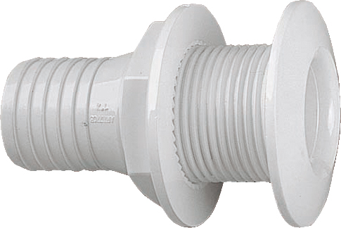 Robust og korrosjonsbestandig skroggjennomføring i hvit nylon med slangekobling. Perfekt for VVS og lenseutstyr. Sikrer en sikker og tett tilkobling i maritime miljøer.