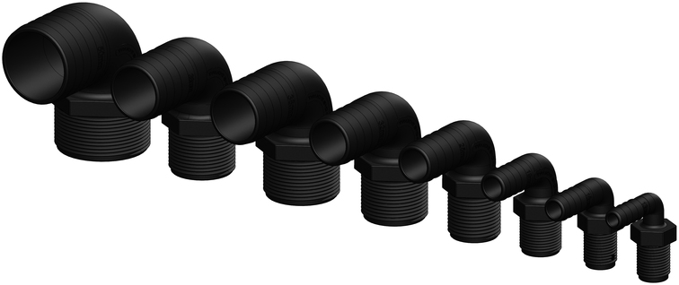 Robust 90-graders slangekopling i kompositt for sikker og korrosjonsbestandig tilkobling. Tåler diesel, bensin og bunnstoff. Lang tilkoblingsdel for dobbel slangeklemme.