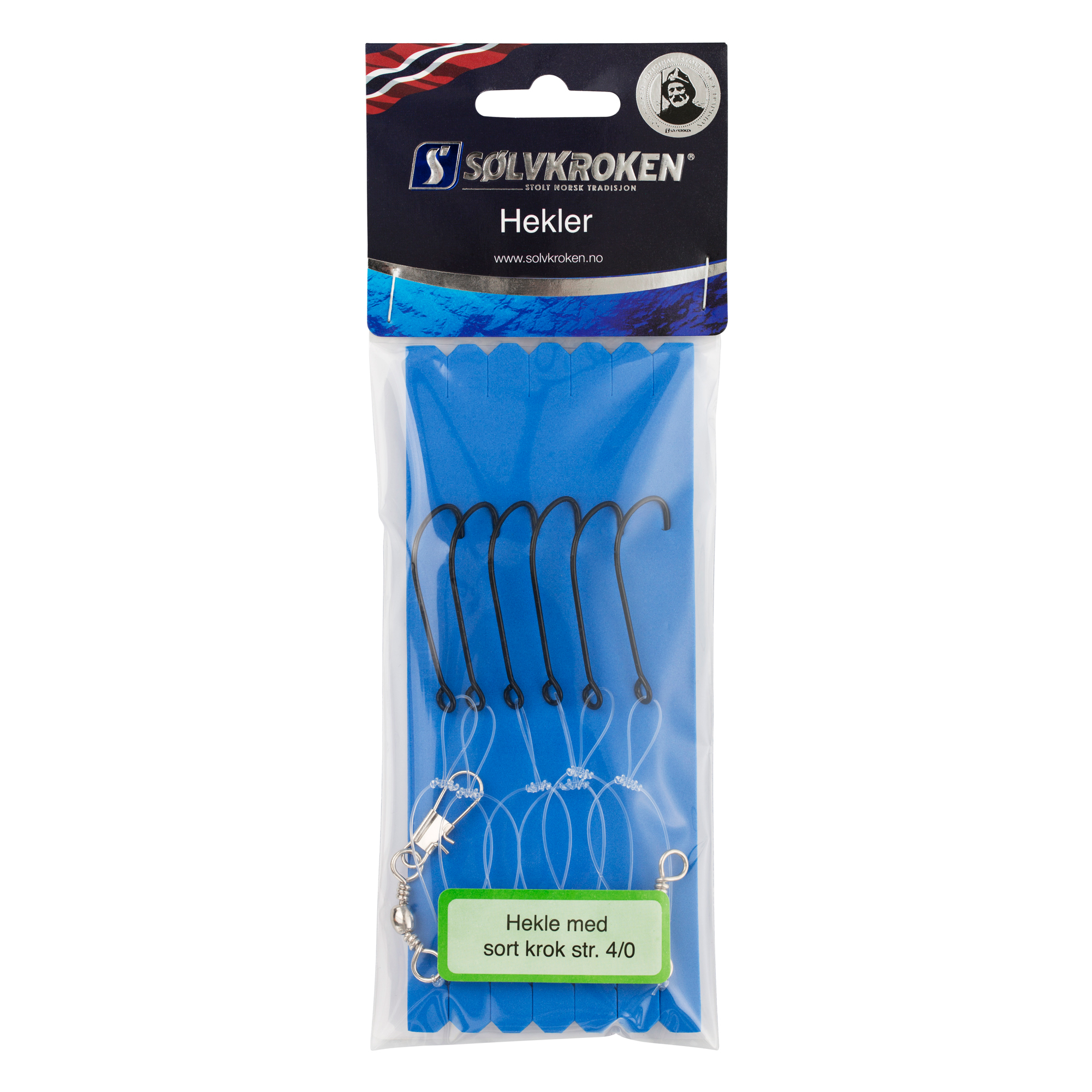 Kroksett med 6 sorte kroker, for makrellfiske. Krokstørrelse: 4/0