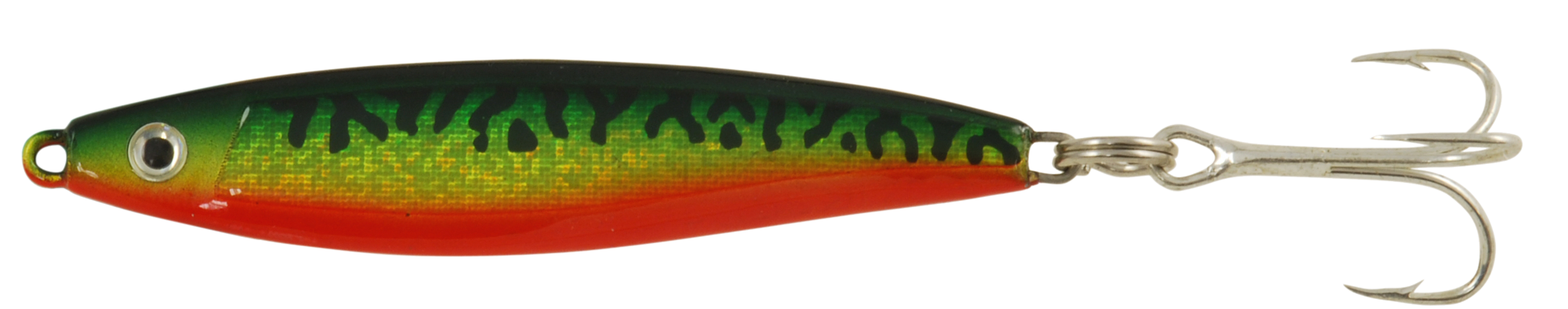 Pirken – Perch / StriperSlukens kropp er utformet med balansert vektfordeling; det gir ekstremt lange kast, men også en fin gange i vannet. Lakkert i populære farger, 3D-øyne. Tips:Ved sjøørretfiske sveives sluken raskt inn, men legg inn raske rykk til siden med stanga mens du sveiver. Ved ferskvannfiske: Kast ut, la sluken synke, stram lina, sveiv litt inn, la sluken synke igjen… og gjenta!
