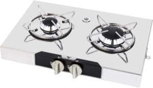 Denne 2-bluss gasskoketoppen er utstyrt med en brenner på 1,8 kW og en kraftigere brenner på 2,8 kW. Dette gir deg fleksibiliteten du trenger for både småkoking og steking av større måltider, selv når du er på farten. Den høye effekten på den ene brenneren gir deg muligheten til å brune kjøtt og lage smakfulle retter.