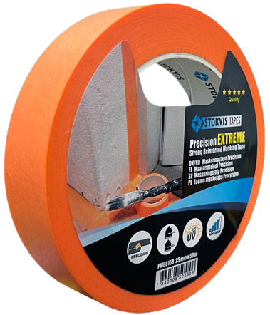 Stokvis Maskeringstape Extreme: Fiberarmert rispapirtape for krevende forhold. UV-resistent, tåler 120 dager utendørs, og fungerer med både vann- og oljebasert maling. Perfekt for båtpleie!